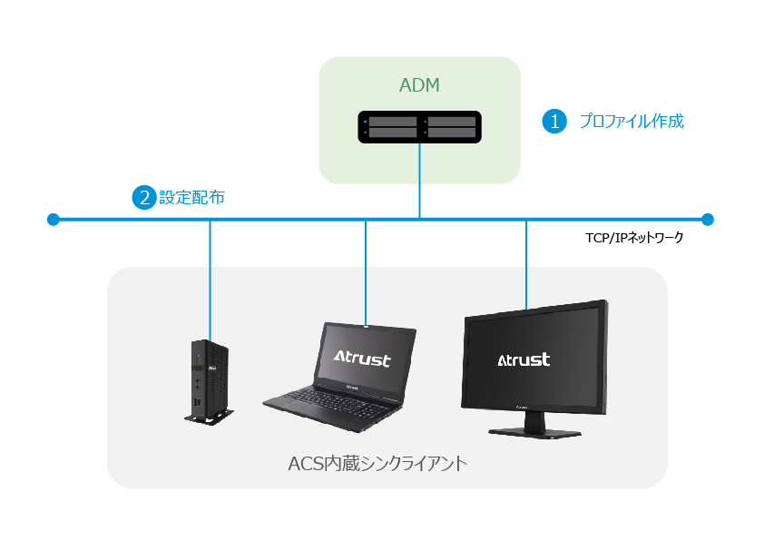 一度プロファイルを作成すれば、そのプロファイルを使用して、同じシンクライアントに対し同じ設定を一括配布が可能です。これにより、初期展開に掛かる時間を大幅に短縮できます。